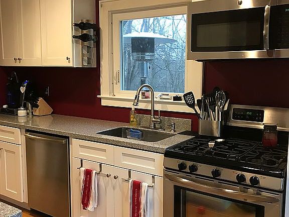 Meticulously maintained Cape Cod with over sized yard and central location. New kitchen with stainless steel appliances and Corian counter tops. Bedroom and remodeled full bath on main level. 2 bedrooms on Upper level plus loft area and full bathroom. Large deck with view of private yard. Circular driveway for ease of entry and exit. Landscaping and lawncare included in rent. Tenant responsible for utilities and snow removal. Credit Check, First month, 1 1/2 months security deposit. No Smoking. One pet may be considered by landlord. Garage not available for tenant use.