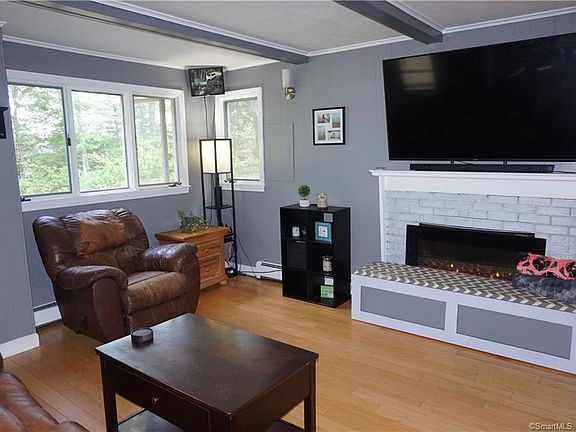 Quiet private road community within walking distance to Pachaug Pond! Affordable bungalow style home great for daily living or weekend getaways. Open floor plan with great room, two bedrooms one on each side of the house. You can smell the pine trees and hear the birds from the peaceful backyard of this home. The detached garage easily accommodates 3 cars and affords A+ man cave or car enthusiasts space. 24x30 structure with wood stove for heat if desired (approx 5 years old w/ 60 amp subpanel). The town does not maintain Osga Lane and any improvements are voluntary in cost or time. Approx 25 homes share the road, mailboxes are at the top of the lane. Trash is private. Short drive to access 395 or 138. You'll be charmed!!