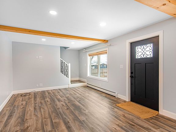 This Middlebury Colonial home has seen major renovations in the past few years. New flooring, windows, roof, kitchen, baths, insulation, siding, heating system, electrical and plumbing were all included in the changes! The open floor plan on the main level is enhanced with wood beams that add a warm touch. The kitchen is open to both the dining and living areas, and features stainless steel appliances, and quartz countertops. You’ll find unique light fixtures and design details throughout the home. A powder room and office or first floor bedroom option complete this level. The mudroom entrance leads out to the back deck where you can relax and look out at the good-sized, fenced-in yard that is perfect for gardens, pets or play! In the summer, head down the street to the river for a quick dip or visit the nearby Waybury Inn for dinner. Upstairs is a spacious master bedroom with two closets and a beautiful bath with a walk-in, tiled shower. The second floor includes two additional bedrooms and a full bath and laundry hook-ups. So much natural sunlight filters into this home that it truly gives it a warm, inviting feel!