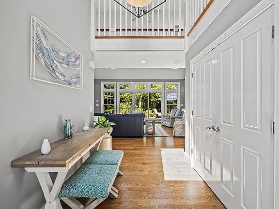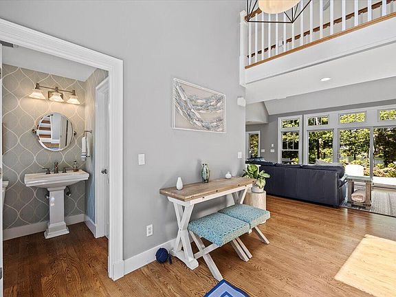 Waterfront on Jenkins Pond. This beautiful home is nestled into a peaceful, pristine setting where nature abounds. With just about every amenity available inside and out, you can relax and leave your worries behind.A newly renovated(2023) custom kitchen with s.s appliances, (including a viking stove) granite counters, and large island flow into the dining area and open living room providing great entertainment space. The wall of sliders and windows open to the full length deck capture the awesome views of this waterfront home. A 1st floor master w/ walk-in-closet and bath also capture the water views with its windows and sliders providing access to the deck. Two bedrooms on the 2nd floor with water views Two second floor full baths along with a very large bonus room.Fill your days with swimming, paddle boarding and kayaking right from your backyard. When your outdoor activities are over, head to the lower level where a workout room and movie theater are sure to entertain. Outside a large shed provides storage for all of your equipment. A generator, underground fence, new roof, and new sidewalks are just some of the updates.