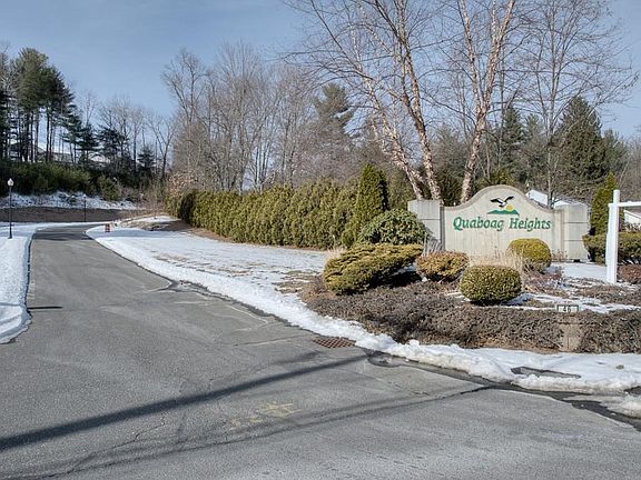 Are you ready for the ease of Condo Living? This Stunning Garden Style unit is located at Quaboag Heights, a 55+ Community that is privately situated off of Route 32. The beautifully tiled foyer offers a warm and inviting entry into the condo. The main living area has an open concept with hardwood flooring, cathedral ceiling, recessed lighting, custom draperies, gas fireplace and exterior access to the enclosed porch. The kitchen is open to the dining area, great for entertaining guests, large center island with Pendant overhead lighting, upgraded tiled flooring, granite counter tops and tiled back splash. 1st floor laundry room. The master bedroom suite has wood flooring, large walk in closet, and sliding door to porch. Master bathroom with gorgeous tile work, Jacuzzi tub and stand up shower. Sun filled guest bedroom with walk in closet and Palladium window. There is a large family room with 2 closets and wall to wall carpeting in the finished area of the basement.
