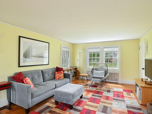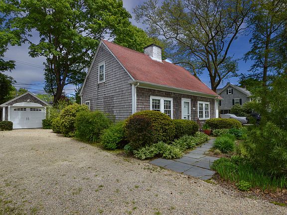 Welcome to 46 Pin Oak Way! This cape style home is nestled on a tree-lined street where the charm of nature blends seamlessly with modern living. Located in a highly desirable Falmouth neighborhood, this property offers a perfect blend of tranquility and village convenience. The eclectic traditional cape style with the addition in 2018 of the architecturally designed kitchen dining area, is a wonderful space to gather with friends. The kitchen and dining area adds a cohesive and inviting atmosphere with high ceilings, recessed lighting, custom cabinets and granite counters. The kitchen island provides additional seating and the expansive window seat in the dining area is perfect for a crowd. Large sliders bring you out to the blue stone patio and lovely yard. Outdoor features include a hot tub, outdoor shower, and sweet gardens. The living room has lovely oak floors and fireplace. There is a primary bedroom suite on this level. On the second floor you will find two front to back bedrooms and a full bathroom. Situated just minutes from village amenities and additionally, the close proximity to Surf Drive beach and the Shining Sea Bike Path provide endless exploration