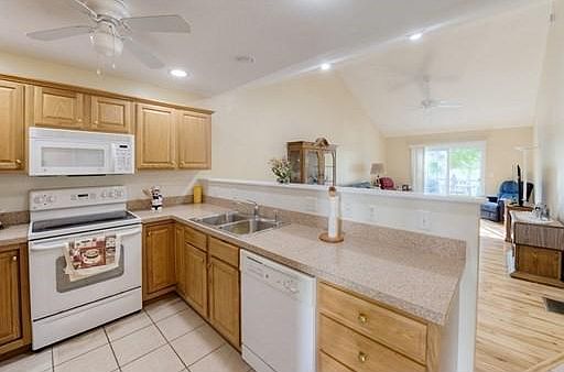 Highly sought after condo at Pinecrest. Situated near the top of the complex by the community gazebo means less traffic by your unit! As you enter the unit into the open floor plan design, there is access from the garage, along with 2 closets. The kitchen has loads of cabinet space, including a pantry style cabinet next to the fridge. The kitchen is open to the dining and living areas, that have beautiful hardwood flooring, cathedral ceilings, and access through the slider to the composite deck. A large, sun filled master bedroom with double spacious closets, a second bedroom, and a nicely remodeled full bath with tile shower and laundry complete the first floor. The finished basement space adds extra versatile space. With a bathroom already there, the possibilities are endless. Also in the basement is plenty of storage along with a large walk-in cedar style closet. Low HOA fee of $170 month and natural gas heat makes this condo an easy choice to make home!