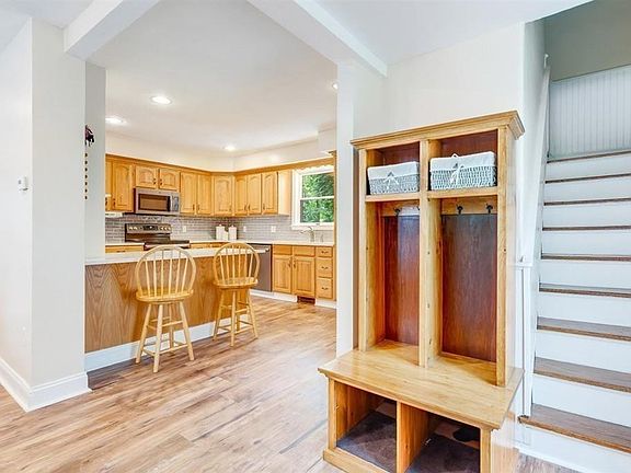 This beautiful home offers the best of both worlds, charm and character of a bygone era and modern amenities of today. A welcoming porch leads you into the heart of the home. A stunning kitchen with quartz counters, slate appliances and gray glass subway tile backsplash. Don't miss the gorgeous new plank flooring throughout the first floor! Desirable open flow from kitchen into a spacious dining room filled with natural light and living room with a wood burning stove. First floor master bedroom suite and a charming sunroom complete the main level. Upstairs there are 2 spacious bedrooms with wide pine floors and a full bath. You'll be delighted by the expansive leveled fenced yard complete with a pool! Ready to host all your summer gathering! Pride of ownership is evident throughout this property. The owners have done the work. Now is time for you to enjoy! Don't wait on this one! Check out the virtual tour! and then schedule an appointment TODAY! Check the showing times.