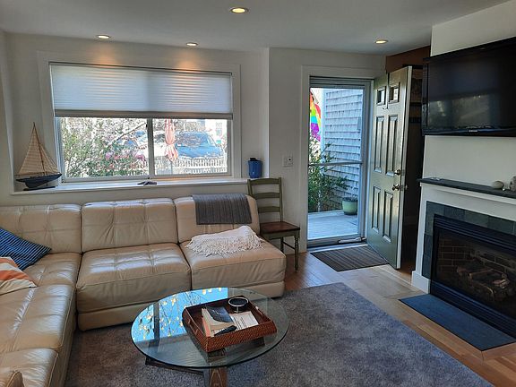 This West End 2 bedroom + media room has an airy, open floor plan living room with a gas fireplace, a complete kitchen with granite counters, stainless steel appliances and white cabinetry. Adjacent is dining nook, and a .5 bath with washer/dryer. Hardwood floors throughout this main level. aUpstairs are two bedrooms and a full bath.. A charming, landscaped, fenced-in outdoor patio at the front, and an outdoor private deck at the rea off the kitchen, for grilling etc.Small condo associationn and low condo fees. Central heat and a/c in all rooms. two deeded parking spaces directly in front of the condo. Excellent rental history. Coveted West End just 1 1/2 blocks from Commercial Street .