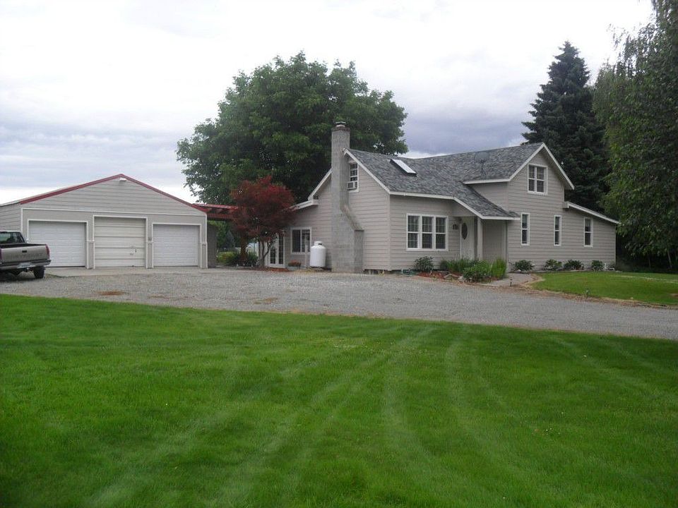 It's all here. Wonderful windows in family room, adjoins living room w/propane fireplace. Newly remodeled kitchen offers plenty of counter space & dining room w/propane free standing stove. Convenient laundry room & additional 2 bedroom upstairs with 1/2 ba & room for office. Master bedroom features walk in shower & closet. Guest home in back yard, barn, triple car garage and lots of storage. Fenced pasture with set sprinklers. Close to golf course. Wine cellar in basement or great bonus rm.