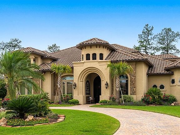 Imagine driving home through a gated entry into a private custom home community on anaward-winning golf course just minutes from The Woodlands. The paved circular and traditional double driveway create extra curb appeal to this true luxury estate property.The cantera entry door makes a profound first impression and the rest of the home does not disappoint. Interior upgrades and design elements are abundant and provide the luxurious ambiance that one would expect to have in a home of this caliber. The jaw dropping custom pool/spa and outdoor living area rival the finest resorts. Flair Custom Builders out did themselves with this home, from the meticulous custom mill work to the butted glass that brings in the spectacular view (arguably the best). High-end Thermador appliances, granite counter tops, custom lighting, and professional interior design. Once you walk in the door, you'll feel right at home.