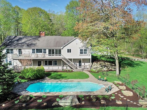 Ready for summer? City sophistication meets country retreat in this spacious, light-filled, updated contemporary with a pool in a peaceful and private setting in a cul de sac neighborhood one hour from Manhattan. Designed for today's living, this home has it all! Step inside and enjoy the open concept floorplan featuring soaring ceilings and walls of glass overlooking 2+ acres surrounded by nature. This 5 bedroom home offers 4,100 sq.ft. of living space on two levels. The main level with rich hardwood floors offers a living room, dining room, family room with wood burning fireplace & vaulted ceiling, and a new gourmet kitchen with quartz countertops, stainless appliances & breakfast bar. Sliders from the family room to a huge deck that overlooks the pool and back yard. Bedrooms on the main level include the spacious master bedroom suite and two add'l bedrooms & new bathrooms. The lower level features 2 bedrooms, a new full bathrm, a huge family room space and exercise room, and offers great possibilities for multi-generational needs - suitable for guests, in-laws and home office. The picturesque level lot with stone walls and professional landscaping frame the pastoral property, pool and patio. Enjoy easy living and endless entertaining space at this remarkable home! 2 car garage. Abundant storage space. Easy commute to Metro North, Merritt (Exit 42) & I-95. Bus to Weston's schools stops at driveway. See Virtual Tour for add'l info.