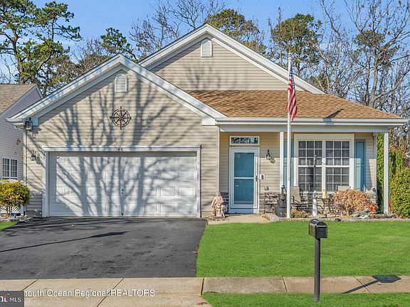 Enjoy living close to everything here in Heritage Bay! This updated 2 bedroom, 2 bath home is packed with premium upgrades throughout including a custom kitchen, featuring Hickory Cabinets and stunning granite, newer appliances and a layout perfectly situated in the heart of the home, overlooking a spacious living room. Hand-scraped hardwood flooring spans the main living areas, leading you into the formal dining area and additional living room. Enjoy the added space this home offers in the 4 season room and take in the wooded views & privacy! New Roof in 2022, garage cabinetry for storage and leased solar to keep the monthly bills amazingly low. Minutes to LBI and conveniently located near the GSP and Rt 9, shopping and grocery stores.