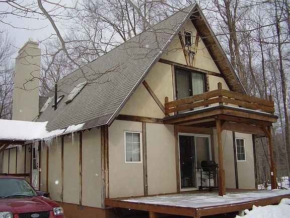 A MUST SEE MOUNTAIN CHALET ACROSS FROM STATE GAME LANDS. IT HAS TWO BEDROOMS FEATURING SKYLIGHTS AND PRIVATE DECKS,A LARGE LIVING ROOM WITH A WOOD BURNING STOVE,COUNTRY KITCHEN,AND SPACIOUS DEN LEADING OUT TO A LARGE DECK., Baths: 1 Bath Level 1, Baths: 1 Bath Level 2, Baths: 1/2 Bath Lev 2
