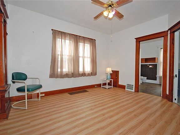 An enclosed front porch welcomes you home. Beautiful Natural woodwork and doors enhance the old world charm. The flooring in the formal dining room has just been replaced. Four bedrooms plus a bonus room gives this home much potential for that "whatever" room you need. Stove and refrigerator in the eat-in kitchen are included as well as the washer and dryer. Full bath has recently been updated. Vinyl windows throughout. Lennox high efficiency furnace, newer hot water tank, glass block windows in basement. Shower and toilet in basement. Walking distance to Pinewoods Park. Easy to show.