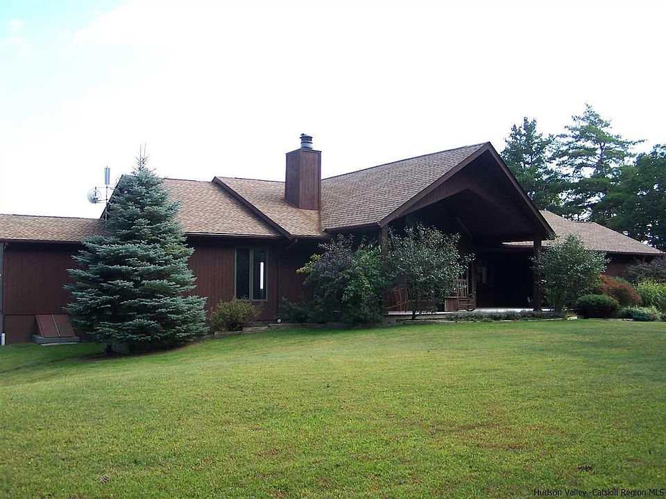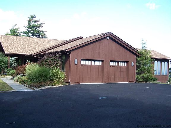 Spectacular, panoramic views from this privately sited, one-level Contempo at the end of private road. On a clear day 180 degree Views: river, mountains, bridges, all the way to CT and MA! Deck with new railing plus furniture and fire pit (included in sale) Light-filled, open floor plan with vaulted ceiling, walls of windows and sliding doors to views. Gourmet kitchen with top of the line appliances, island with second sink doubles as serving station. Stone, wood burning fireplace in family room adjoining living and front entry to house.Two Master bedroom suites. First features en-suite bath with travertine, marble, step down shower, new, deluxe, washer/dryer and walk-in closet.5-Zone heating system plus radiant floors. 2-Zone A/C. Whole house Gen-tech generator, central security plus fire alarm. Auto lawn sprinkling plus a free, web-jogger internet service agreement. List of improvements noted in Addendum.