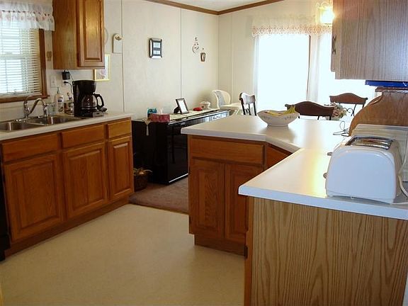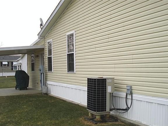 27x42 Hart with tandem, 2 car garage. Covered front porch. Back patio. Large kitchen open to dining and living room. All appliances stay. Cathedral ceiling. Two full baths with updated toilets, sinks, and fixtures. Master has shower, and a garden tub. New furnace/air heat pump system in 2009. New water heater in 2010. Updated water softener. Adult park (55 and older). Pets permitted. Lot rent includes trash, water, and sewer. Must be park approved. Seller pays homestead tax. Actual tax if under 65 years of age is 614 semi.