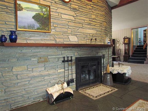 This well built Mid Century home with its gracious rooms offers a versatile floorplan with 2596 square feet. A wonderful, open Living Room and Dining Room with beautiful curved plaster ceiling - perfect for entertaining, sliding glass doors in the Dining Room lead to a private stone patio with views of the woods, a "retro", sun filled Kitchen, a large Family Room with a loft (offering a great spot to stargaze with the telescope) and gas fireplace (or potential for a second master suite), a Den area with cathedral ceilings and a floor to ceiling stone fireplace, two Bedrooms (on the main level or convert back to the original three) and three full Baths plus a two car Garage with work space, tons of closets, storage and large walk-out basement with laundry, and workshop (potential to finish recreation room) situated on .82 acre. As is, this home is a two bedroom (as town card states) but does have potential for four bedrooms.