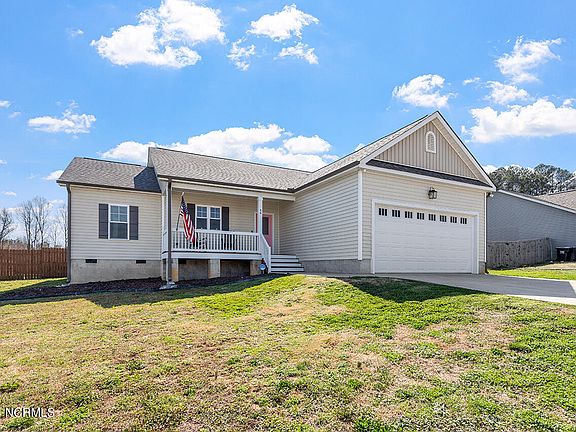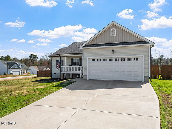 Peaceful one-story living in the Flowers Hill East community of Middlesex now available! Built in 2019, this beautiful 3 BR / 2 bathroom ranch offers a functional and open floor plan ideal for entertaining or relaxing. As you make your way past the charm of the covered front porch and through the front door, either take a left into the spacious kitchen with abundant white cabinetry, granite countertops and stainless steel appliances, or head straight to the living room to enjoy the vaulted ceiling and cozy gas fireplace. The spacious primary suite to the left of the home is thoughtfully complemented by two secondary rooms and a full bath on the right. The inviting backyard deck and patio spaces provide the perfect outlet for enjoying the fenced in part of the more than half acre parcel! Additional features include a two-car garage and mudroom with nearby laundry...and no HOA! Convenient to community parks, HW64, Wendell and a short drive to all of the offerings of Raleigh and Durham! Don't miss this one!