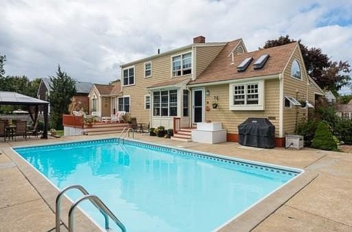 Welcome to this seaside paradise. This architecturally designed cape style home has been completely remodeled. Gorgeous center island kitchen with granite tops, s/s appliances, gas cook top , sky lights and recessed lighting. Large living room with Hard woods, fireplace and beautiful picture window. Master bedroom with wall to wall carpet, walk in closet and sitting area. The master bath has double sinks, granite top, amazing tile work, walk in shower with rain head faucets. Upstairs you will find 2 large bedrooms both offering a beach like feel with hard wood floors. Detached 30 x 28 garage with finished area above has separate kitchenette and full bath which could be used as a media room / game room / or as guest quarters. Backyard oasis with in ground pool, deck, private gardens and a kitchen area that's ready for your grill. Other highlights include, dual 200 amp services, stone walkway and a front porch to enjoy your morning coffee. Walking distance to the harbor and lighthouse.