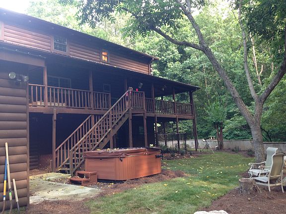 Once in a lifetime property now available w/4.4 acres only 2 miles over Cobb Co line and 1/4 mile to the new Lakepoint sports complex. Log home was renovated in 2012 with high end finishes and modern touches. 3 master suites with custom closets and baths, Kitchen has custom cabinets, farmhouse sink concrete countertops, Stunning 15ft riverstone fireplace highlights the greatroom. Second kitchenette, theater room, office/bedroom and full bath in daylight basement. Outdoor riverstone fireplace, grill, refrigerator and sink. Hot tub over looking private back yard