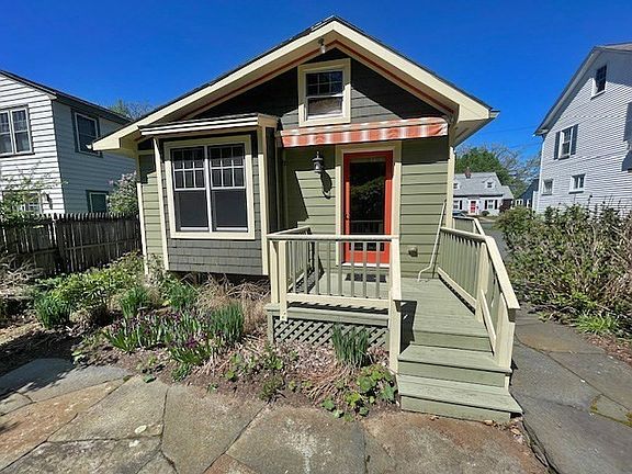 This 20’s colonial is located within walking distance of Northampton High, Cooley Dickinson Hospital, Jackson Street School and Childs Park. First floor features include a living room with fireplace, formal dining room, renovated kitchen with appliances, and modern bath with separate shower, soaking tub and an adjoining a bedroom. Upstairs are three more bedrooms and another full bath. The gas heating system is modern and there are mini-splits to help you keep your cool. Outside is a large open front porch, attached rear deck and patio. Most of the back yard has been developed into garden space for those with a green thumb.