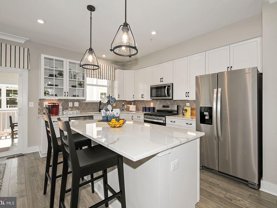 WATERFRONT HOMESITE!!! Incredible Marina views!! Nestled along the Cambridge Creek, this home is located in the highly-desired Deep Harbour, gated community, offering stunning water views, a private marina, a community pool with a bathhouse, a riverwalk throughout, and the convenience of maintenance-free living. The home boasts 1,796 square feet of living space spread across three levels. With three bedrooms and a one-car attached garage, this new construction townhome has plenty of room for all your needs. On the first floor, you'll find a finished rec room, perfect for a home office or additional entertaining space. The open second floor features a spacious kitchen with a large island. Off the kitchen is a huge deck with direct views of the water!! Upstairs, you'll discover three well-sized bedrooms, including the primary suite. The primary bathroom features a double bowl vanity, a spacious shower, and a walk-in closet. Other upgrades include Quartz counters in the kitchen, a backsplash, upgraded flooring and wall tiles throughout, Upgraded Cabinetry, Pendant Lighting, Upgraded plumbing and lighting fixtures! Centrally located in Cambridge, this townhome offers easy access to Route 50, making it convenient for commuting or traveling to nearby areas. Additionally, you'll be able to enjoy the charm of downtown Cambridge, with its diverse selection of restaurants and boutiques. Whether you're looking for a cozy dining experience, or unique shopping opportunities, the downtown area has it all. Explore the local shops, dine at delicious eateries, and immerse yourself in the vibrant atmosphere of Cambridge. Don't miss out on the opportunity to explore all that Deep Harbour has to offer. Schedule a viewing today and make this beautiful townhome your new home! On-site Sales Office Hrs: 10 AM-5 PM, Everyday! Model Address: 527 Seaway Ln, Cambridge, MD 21613. **Photos are of a similar home and not the subject home. **Pricing, features, and availability is subject to change without notice. See a New Home Counselor at Deep Harbour for details. Beazer Homes - MHBR No. 93. #NewHome #CambridgeLiving #DeepHarbour