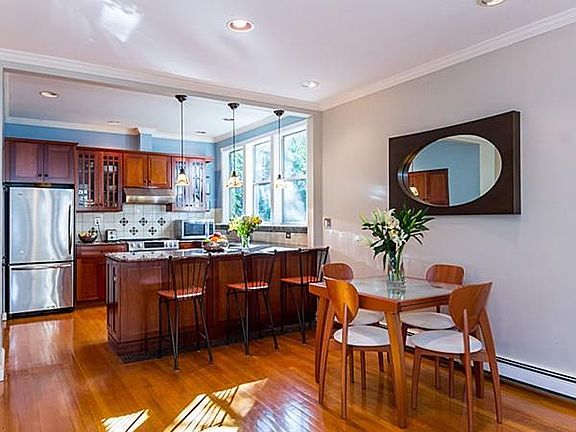 UPDATE: Price Reduction. Open House Sat. Nov 4 and Sun Nov 5 from 1-3 each day. Harvard Sq! City living at its finest! Quiet one-way street with many popular restaurants around the corner. 2026 s.f. attached home with 4 levels of contemporary living. Built in 1985. 3BR + 3.5 baths. Open concept kitchen, living and dining room framed by oversized windows. Chef's kitchen with custom cabinets, granite countertops, apron sink, pendant lights and these new appliances: Bosch range, Wolf range hood and Bosch dishwasher. Living room fireplace with mantle. Master bedroom with vaulted ceilings and en suite with new vanity, fixtures and mirror. Hardwood floors, solid core doors and modern light fixtures throughout. Washer & dryer. Finished basement with ent. room (or 4th BR) + full bath. 1 car garage. Private outdoor space. Third-floor private deck. All new common area upgrades include mahogany deck, all new facade of street-facing units, light fixtures. A must see that won't last!
