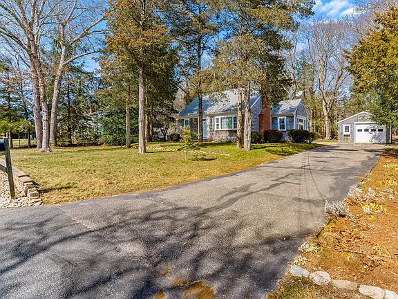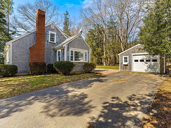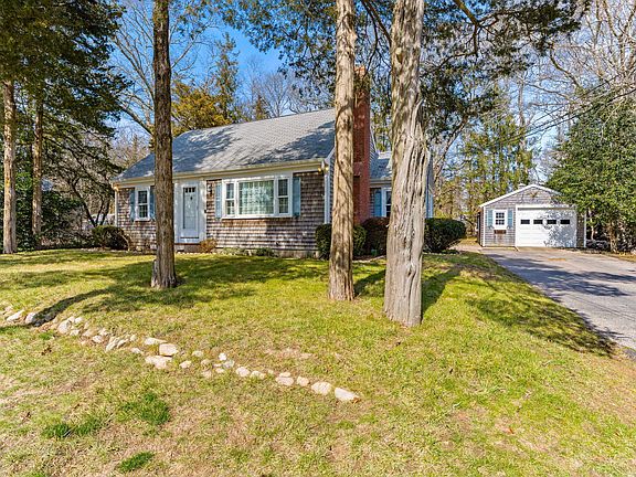 See this home soon! Updated Cape at the end of a quiet street in downtown Falmouth. Beautiful private back yard with woods behind that lead to the Goodwill Park Road and Grew's Pond a summer swimming favorite. But if saltwater is your thing, Woodneck Beach is a 6-minute drive west via Sippewissett Rd and Surf Drive Beach is 6 minutes to the south. Downtown Falmouth and its fabulous stores and restaurants are nearby too. Love to bike? The bike path is right down the street. When you get home there's four bedrooms for a big family or lots of friends, two updated full baths, kitchen, and a dining room surrounded by windows. The living room is cozy too with a fireplace surrounded by lovely built-ins. The entire home has well cared for hardwood floors except baths and kitchen which are tile. Updated systems, gas heat, and partially finished heated basement. The large backyard features an expansive patio, outdoor shower and garage with lots of storage. This is the perfect spot for the Summer of '23! Make it yours! Professional pictures 3/17.