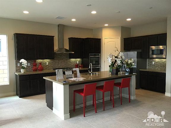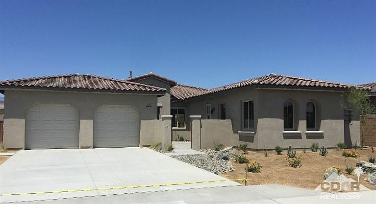 Lot 25. This home was a model. It is being sold unfurnished. The Extensive and distinctive furniture is being sold separately. This is a New Home in La Quinta, built to the CA Green Building Code. It enjoys a large great room concept with 12' multi-slider door that brings the outdoors in. Only steps away from the large yard with room for a pool! Majestic Mtn. Views. For the epicurean, the large kitchen with Whirlpool stainless appliances including double ovens and a walk-in pantry, Granite Slabs countertops and a custom back splash. The Master Suite is spacious and provides a luxurious Master Bath complete with a 6' soaking tube and tile walk in shower. Attached Casita with an outdoor entrance. Located close to World Class Gold Courses and the Indian Wells tennis Gardens. Minutes away from grocery stores and various retail shopping. Located in the Desert Sands Unified School District, schools are within walking distance. Photos of upgraded model.