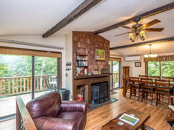 Welcome to your year-round turnkey home in Knights Hill! The home has a full length screened in porch which opens into the first level family room with 2 bedrooms and bathroom. Second floor boasts high ceilings, full length deck with 2 sliders, fireplace in the living room, dining area, kitchen, bedroom and bathroom. The basement has a washer and dryer for convenience. The property has mini splits which can be monitored remotely as well as the hybrid water heater. New roof was installed September 2024 with full ice and water shield. Knights Hill amenities include a private beach with clubhouse, playground, docks with boat slips on Moose Pond within walking distance from the home. Other amenities include community water, in-ground pool with clubhouse, and tennis courts. Home is a few minute drive to Pleasant Mountain Ski Area, Bridgton Village, and North Conway, NH. Home is being sold fully furnished to move in and enjoy.