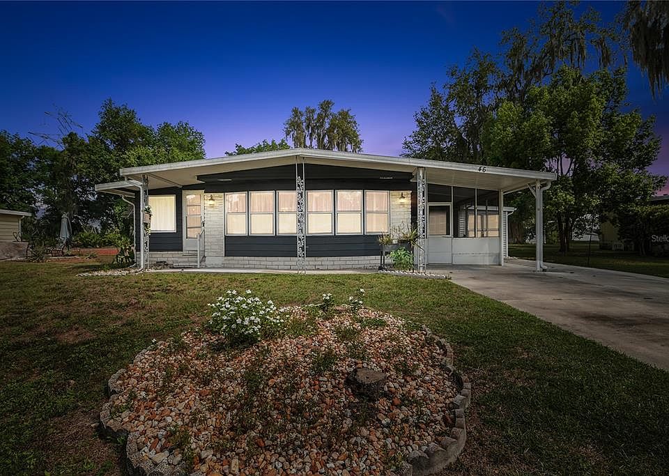 PRICE IMPROVEMENT! Welcome to this beautifully maintained manufactured home in the sought-after 55+ golf community of Continental Country Club! This move-in ready home features a bright open floor plan filled with natural light and numerous recent updates, including new flooring and subflooring throughout the living room, dining room, kitchen, Florida room, and hallway (2023), a new roof (2011), HVAC system (2005), hot water heater (2014), dishwasher (2017), and range (2015). The spacious kitchen offers abundant storage and a breakfast bar opening to the living room. The master bedroom boasts an en suite bathroom and large closets. Enjoy year-round comfort in the large screened-in patio, and take advantage of the convenient storage area that accommodates a golf cart and includes a washer and dryer. The private backyard, enclosed by a white vinyl fence, is ideal for pets. Community amenities include an Olympic-sized pool, championship golf course and driving range, billiards, tennis and pickleball courts, an on-site restaurant and lounge, craft buildings and a woodworking shop, Lake Okahumpka and fishing spots, a fitness center, numerous card clubs, and a library. Located just three miles from Brownwood Paddock Square, which offers fantastic dining and entertainment options, this secure, gated community is perfect for an active lifestyle.