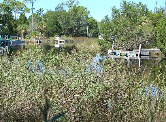 This 2 BR fish camp has about 88 ft on Rocky Creek and offers very easy Gulf access for smaller boats. Rocky Creek boat ramp has recently been upgraded by county. Fenced lot has a private ramp, dock needs repair. Also has 16x16 storage bldg for your gear. Located very close to hunting preserve - best of both worlds!