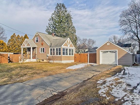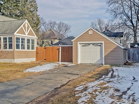LOCATION LOCATION LOCATION! This adorable 2 bed, 1 bath Cape is situated in a sought-after neighborhood and everything you've been looking for! Enter through the front door and you will see an open floor plan and spacious living room with crown molding, built-in cabinets, recessed lighting and a barn door. The kitchen is freshly painted with new trim and a breakfast bar. All appliances to remain. Beautiful refinished full bathroom! Upstairs you will find 2 spacious bedrooms. Siding and windows from 2015, All new R15 insulation from 2020, furnace from 2020. 2 heat zones. 1 car garage and 2 storage sheds. Extra tiles in porch to remain so new homeowner can finish the porch floor.