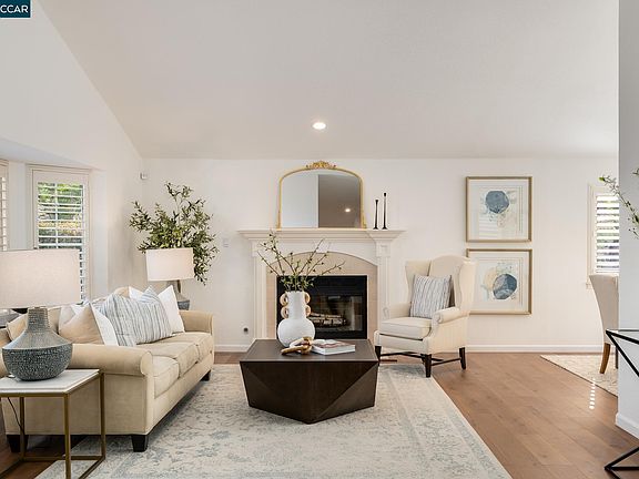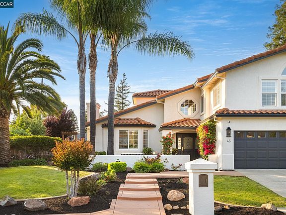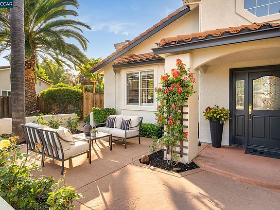 Exceptional home nestled at the end of court in Greenbrook. Over $100,000 in recent upgrades. Warm white stucco, red tile roofing, & vibrant bougainvillea vines climbing the façade. Engineered hardwood floors throughout, fresh interior & exterior paint, new designer lighting & stunning whitewashed stone fireplace. The foyer transitions into the living area and formal dining room. Fresh paint & many windows fill the home w/ natural light, creating a bright atmosphere. Eat-in kitchen w/granite countertops, white refinished cabinetry, a gas range, stainless steel appliances & ample storage. A downstairs bedroom & full updated bathroom provide ideal accommodations for guests or multi-generational living. Upstairs, you’ll find three generously sized secondary bedrooms and an impeccably maintained hall bath. One has been expanded,features oversized walk-in closet. Primary suite w/vaulted ceilings & expansive layout w/ sitting area or workout space. Primary bath includes a large jetted tub, dual sinks, updated lighting & spacious walk-in closet.Step into the beautifully landscaped private yard w/newly tiled built-in BBQ, garden beds, new fencing, pavilion & 1 car detached garage. San Ramon Valley School District, walking distance to Greenbrook Elementary & Iron Horse Trail.