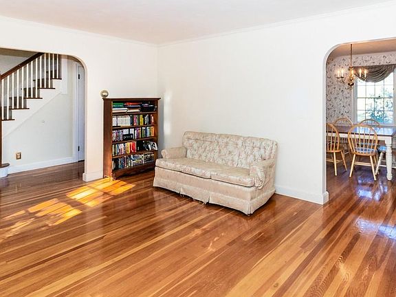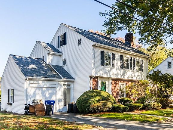 Charming Colonial on Quiet Side Street. Spacious, bright and airy rooms with gleaming hardwood floors throughout on both levels. Fireplace living room with dual bookcases, Formal Dining Room with built in china cabinet, First floor den ideal for family room, studio, office or play room. Large eat-in kitchen with pantry area and access to rear deck overlooking the expanse of Kelly Field. Three bedrooms, and full tile bath with separate shower/tub. Lower level is finished with large walk in cedar closet. This great home is just waiting for you to make it your own ...update w/ your personal touch. The breezeway which serves as an ideal mudroom enters into the one car garage. Convenient to shopping, "T" recreation, and major roads. Open House Sunday 12:30-2.