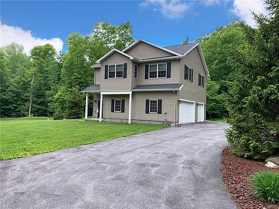This "elevated" custom built Ranch home has been meticulous maintained.Sitting in a private HOA community. Used as a seasonal home it is still like new! The 3.5 oversized garage has heated floors- and a ton of storage,large enough for al your toys and boats! 4 Seasonal sunroom off the garage area- upstairs is a new ranch with heated wide plank hickory floors- stainless steel appliances in the kitchen and 2 great size bedrooms! Sellers say "Its like living in a tree stand/ house" you can see everything! Sep. heated BUNK house (counted as 3rd bedroom for listing). by woods and a walk to the Common owned sandy beach area of 1500 feet of Salmon River Res. Picnic area and common dock for members only. Perfect year round or seasonal home in the heart of hunting and snow mobile country!