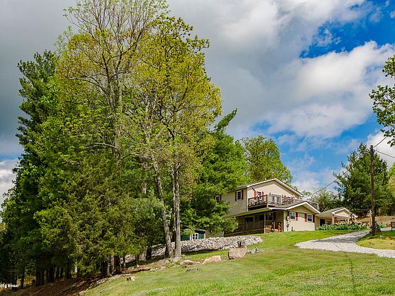 Beautiful, peaceful retreat great for large gatherings of family or friends. Three bedrooms, living room, kitchen, two and a half baths and mudroom with laundry round out the first floor, with just a few steps up to the master suite. Upstairs the large family room and two bedrooms have vaulted ceilings, plus a full bath. French doors lead from the family room to a large deck with a great views (water view depends on the time of year and how full the trees are).Mudroom, master suite and the entire second floor were added on in recent years. Covered front porch provides a shady area to relax. The back of the house includes another deck with a pergola and off the side is yet another small porch. A 12x20 shed provides plenty of storage. Home includes 2 furnaces, 2 central air units, 3 water