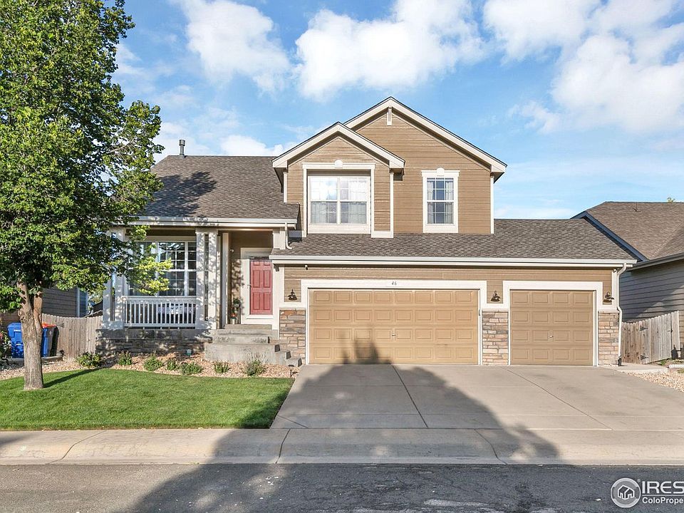 Enter the warm embrace of this exceptional home nestled in the heart of Johnstown! Discover an exceptional community that retains its charm while experiencing expansion that is bringing in shopping, restaurants, a brand-new YMCA facility, and even an enticing dinner theater. Explore the network of abundant walking trails and park that grace the neighborhood, and walking distance to the neighborhood elementary school! Commuters will find ease with proximity to I-25, enabling effortless access to various destinations. NO METRO TAX, and just a small HOA. This home boasts a fresh NEW roof with Class 4 Shingles and new gutters. Radon mitigation has been conducted, alongside the addition of a newer A/C unit. Upon entry, a spacious living area welcomes you complete with a gas fireplace to warm those chilly winter nights - ideal for a blanket and a book. The expansive kitchen is ready for entertaining with beautiful white cabinets with hardware and a convenient pantry. The main-level laundry room offers extra storage and a sink for effortless laundry tasks. A main-floor powder room caters to visiting guests. Ascending upstairs reveals 3 inviting bedrooms. The primary bedroom is a haven, ample in size and featuring a separate sitting area and fireplace. The attached ensuite bathroom is a dream, equipped with a shower, soaking tub, and a large walk-in closet. The other two upstairs bedrooms offer comfortable dimensions. A bonus lies in the basement, boasting additional living space including a rec room, bedroom and a bathroom. The sizable backyard presents a valuable addition, complete with a spacious shed to accommodate your storage needs. Let's not overlook the large 3-car garage, perfect for even more of your toys! A whole house fan is a bonus. Your peace-of- mind is secured with the inclusion of a home warranty. Welcome to a world of convenience, and community - right here in Johnstown!