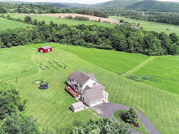 Enjoy gorgeous views of the lovely rolling Helderberg's from a welcoming wrap-around porch. Exceptional master w/ soaring ceilings. Hardwoods throughout. Picture window reading nook features built-ins and seat to capture mountain vistas. Full basement w/ workshop area. Whole-house generator! Cedar back deck, fruit trees, raised beds with water connection, 30x30 5 stall barn, storage shed, tapped maple trees on gorgeous, useful 11+ acres. Solidly built home w/ paved circular driveway is waiting for you!