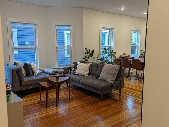 46 Simpson Ave Apt 1 is the first floor apartment of a Somerville two-family home located between Davis and Teele Squares. Our family of four (Mom/Dad and two pre-schoolers) lives upstairs in the only other unit on the property. We are in the final stage of gut renovating the entire property which will be ready to rent for a September 1 start. The renovation brought the building down to the studs and allowed us to repair, replace, and update everything - from insulation and new walls to all electrical, plumbing, and HVAC - while maintaining the original floors from 1910. The apartment includes two sizable bedrooms with large windows and plenty of natural light and a single bathroom updated with modern finishes. The common area is also full of light and includes a modern and efficient kitchen (with stainless steel appliances, plenty of cabinet storage, and a large pantry) as well as an open layout that can flexibly fit your dining and living room needs. Laundry machines are located in an 85 sqft private basement that includes space for storage. Additionally, tenants will have access to a shared front deck, shared back yard space, and dedicated rear deck. We are looking to sign tenants for one year (Sept 1, 2024-Aug 31, 2025) with the option to extend the lease if both parties are interested. Rent does not include utilities (gas, electric, water, internet/cable are all tenant responsibilities). On-street parking is available on Simpson Ave and on the surrounding streets. Smoking is not permitted inside the aparment nor is it permitted anywhere on the property. Tenants are expected to maintain reasonable quiet hours per City of Somerville guidelines. No pets are permitted. At the time of signing, a security deposit ($3,800), first month ($3,800), and last month ($3,800) is expected. No broker fee required.