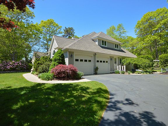 Elegant shingle style contemporary in highly desirable Water By Estates just steps to the private beach, tennis courts and playground. This sun filled 4 bedroom 3200 square foot home has all the amenities you are looking for including dramatic cathedral ceilings, gas fireplace, first floor bedroom suite, open floor plan, eat-in granite kitchen, formal dining room and private home office. Attached two car garage and full basement offers plenty of storage. Natural gas heat with central air conditioning, and whole house generator keeps the home comfortable year round. The beautiful grounds have been thoughtfully designed; enjoy outdoor dining and entertaining on the deck and patio while surrounded by the flowering perennials.