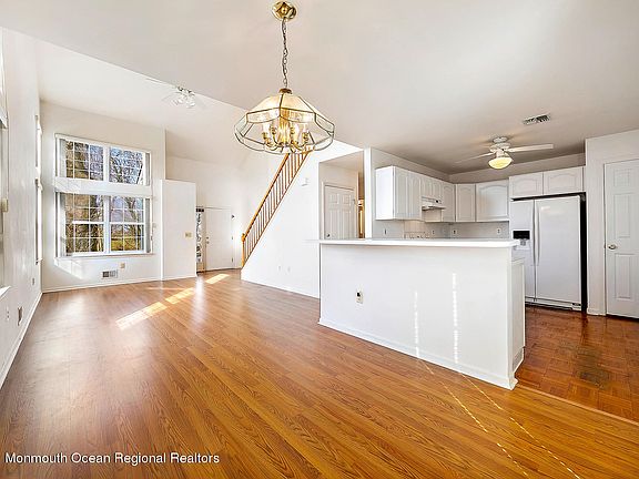 Welcome to 46 Springfield in Oceanport, NJ. This light-filled 3 bedroom 2 full bath home offers open concept living room and dining room with vaulted ceilings and wood laminated floors. Master bedroom is on the first floor with two additional bedrooms and one bath upstairs. Bedrooms all have nice closet space. This home offers partially finished basement with extra room, oversized garage, and sits at the end of a dead end street. In addition, Roof, furnace, air conditioning, and washer/dryer all new within the past 6 years. Minutes to Jersey Shore Beaches and restaurants while being close to major highways and transportation. Do not miss this opportunity to live in much sought after Oceanport.