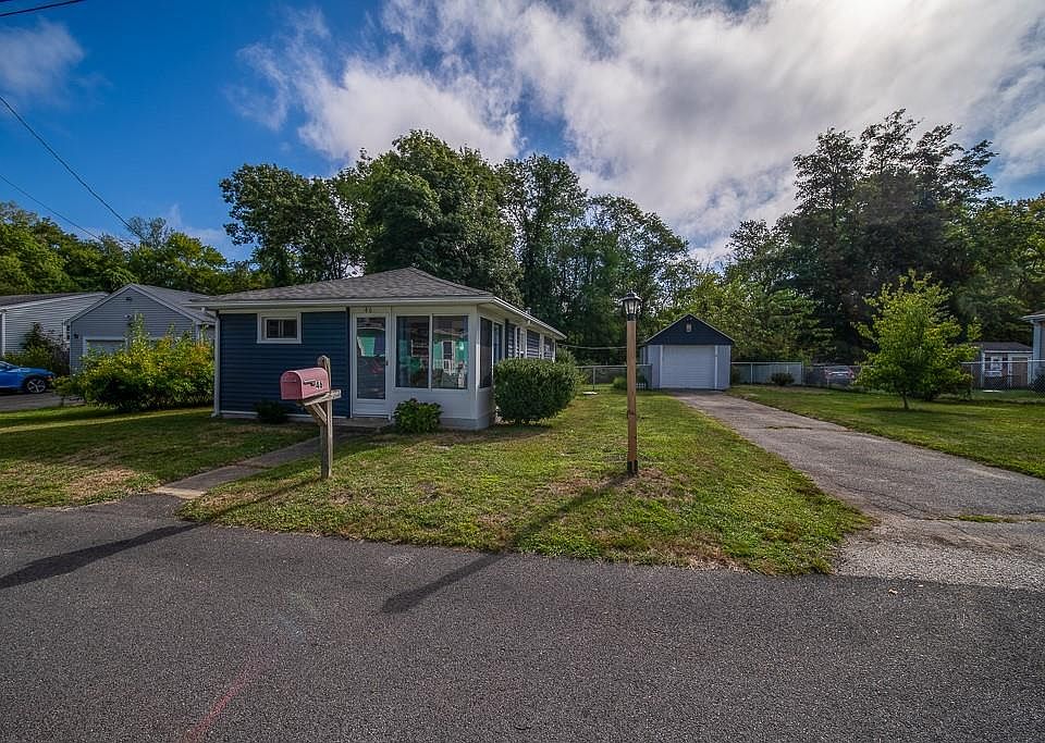 Simplify your life! This little gem of a home has 1 bed, 1bath, and a beautiful fenced rear yard! This cozy home offers peace of mind with low maintenance and the serenity of a landscaped fenced rear yard abutting a wooded area. Enjoy gas cooking, gas heat, and gas hot water. A slider to the rear yard leads you to a private area where you can relax and enjoy nature. There is a detached 1 car garage for storage. Some home improvements include roof (2020), house vinyl sided (2022), garage door (2020), Rear yard fenced (2021), and water heater (2021). Home improvements by seller total over $30,000 in the last 5 years! The house is located within walking distance to a bike path which leads to Rocky Point State Park! This is a great area to explore if your interests include walking, biking, fishing, or golf! Close to Harborlights Golf and Marina. Conveniently located near shopping. This may be your answer to downsizing or not renting!