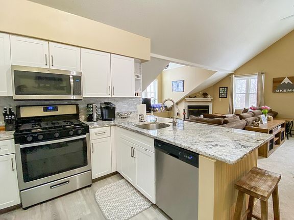 This nicely updated 2+ loft Winterplace home is bright, sunny and offers easy access to Mountain Road ski trail on Okemo. This floorplan offers a spacious kitchen, dining living area with a vaulted ceiling, and a newly renovated dormer with extra windows to give even more space to the room. Call us today to take a tour of Winterplace to see all that this slopeside condominium complex has to offer.
