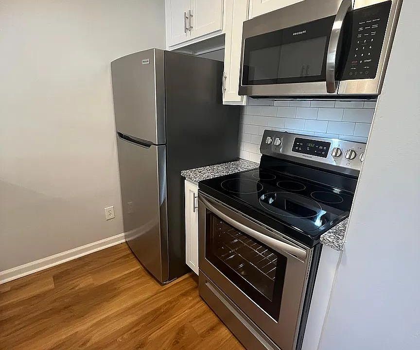 - Included: Garbage disposal, Microwave, Refrigerator