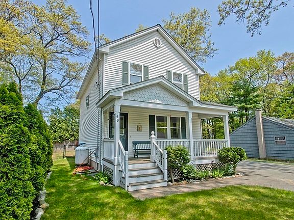 This stunning colonial offers all the amenities you have been searching for. The front porch welcomes you to a desirable cozy open floor plan. The updated kitchen with custom cabinets, copper farmhouse sink, soap stone counters and generous eat-in area opens to a main dining area with bright natural light that leads to the back deck and hot tub. Beautiful wood floors on the first floor with generous living room, dining area and updated half bath and first floor laundry. Two bedrooms upstairs, including one bright, spacious primary bedroom offer ample space and an updated full bath with soap stone counters. Newer central air, oil heat, installed standalone propane gas heater. Back yard fully fenced in with spacious newer shed. This magnificent home has it all! Additionally, only minutes away from Congamond lakes, dining, shopping, and entertainment.
