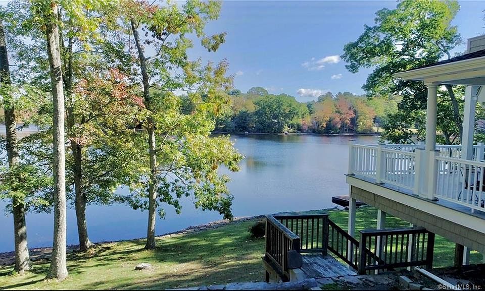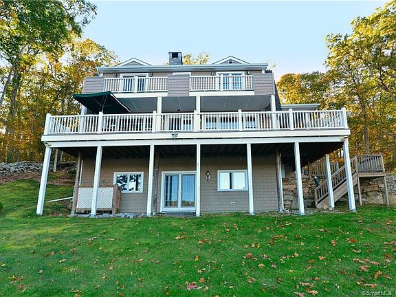 Exquisite waterfront contemporary located on 6.28 private acres. The sale includes a second waterfront building lot The unique architectural design provides peaceful and sweeping water views from almost every room in the house. Three levels of patios and no-maintenance composite decking facilitates the stunning inside-out living. Perfect winter relaxation with two stone fireplaces, including a double sided main floor fireplace Perfectly set up for expanded lower living space with soaring 12 foot ceilings, wood stove, heat and a full bath. Other features of the home include hardwood floors throughout, granite kitchen island and counters, and a luxurious master suite with heated towel rack jetted tub. The mechanicals include central air, a superbly engineered Buderus furnace, outside stove, dock, and attached & detached garages for all your storage needs. Glasgo Pond is a wonderful 168 acre body of water. Create your waterfront compound and enjoy swimming, boating and fishing with your friends and family. Live here and be on vacation all year round