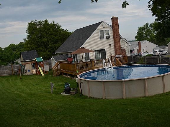 Cape located in Lake View Estates. Quality and care shown throughout this charming home. Corner lot with fenced in yard. Above ground pool, New driveway 2 yrs ago, plenty of room for entertaining, Open floor plan main floor.Many updates throughout. All energy efficient windows. The family room has sliders leading to a wrap around deck. Granite counter tops with stainless steel Appliances.The basement has one finished room.