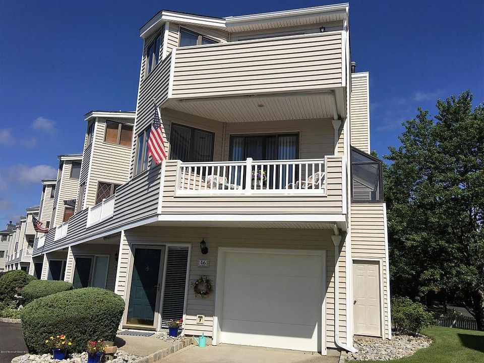 This bright, spacious end unit enjoys a private location backing wooded area. Bright kitchen with breakfast room & pantry, dining room with built-ins & wall of windows lets in natural light, spacious living room with balcony, master suite with large walk-in closet, full bath and balcony. Lower level has guest room/office with full bath. New carpeting, window treatments and freshly painted. Enjoy everything living at the shore has to offer in this peaceful, riverfront complex. Pool, tennis court, marina & close to Pier Village, fine dining, beaches.