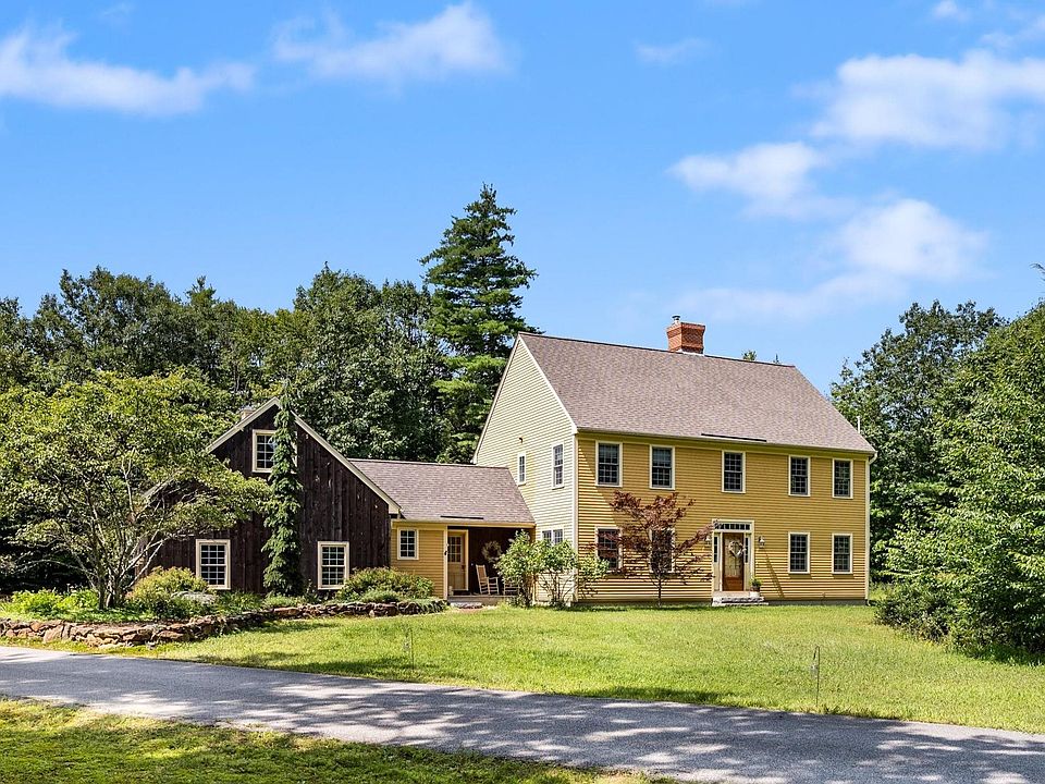 QUINTESSENTIAL REPRODUCTION COLONIAL IN AN EXCEPTIONAL SETTING…AN ELEGANT BLEND OF HISTORIC CHARM AND MODERN AMENITIES! The purity of 18th century lines and craftsmanship are artfully executed in this well-appointed home filled with distinctive details. Nestled on wooded acreage a curving brick walkway leads past colorful perennials and stone walls to a transom window-lit foyer where wide pine flooring and custom staircase greet you. Enjoy morning sunshine as you relax with a book in the gracious sitting room as you start your day. Invite guests to gather around the island in the kitchen where hand hewn ceiling beams, cherry cabinetry and farmhouse sink are a stylish backdrop for entertaining. Through an arched doorway spy a dining room ideal for hosting milestone events and enjoy after dinner conversation and coffee in the living room as the wood stove creates a cozy atmosphere. Throw open French doors on balmy nights to a brick patio oasis that overlooks a park-like backyard and heritage gardens where you’ll host memorable al fresco events and take in painterly sunsets. Paradise found! Host lively game day gatherings or enjoy a rousing game of billiards in the highly finished lower level designed for year-round fun. Dash off an email in the upstairs office area, then retreat to the primary suite for a soothing soak at day’s end. Rest easy knowing there are three additional sizable bedrooms to accommodate everyone. FILLED WITH CHARACTER AND THOUGHTFUL FINISHES…WELCOME HOME!