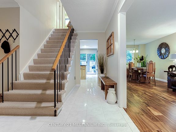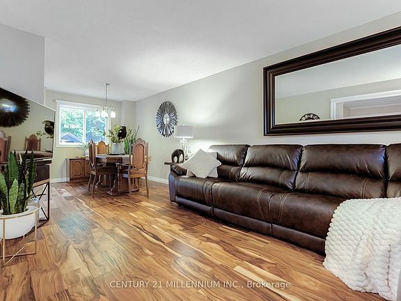 Gorgeous fully detached brick home featuring a separate side entrance with a custom pine stairwell to a professionally finished one bedroom in-law suite featuring open concept recreation room with laminate flooring, eat-in kitchen with neutral ceramic title flooring, backsplash, ample maple cabinetry, pot lighting, extra large bedroom with double walk-in closet, egress window and large three piece bath with separate shower stall. Covered front porch leads to a spacious foyer/hallway with neutral ceramic titles. Beautiful eat-in kitchen with ivory tone cabinetry, dark accent counters, coffee station, bright picture windows, sliding door walk-out to deck, s/s fridge, stove and built-in microwave. Cozy main floor family room with brick wood burning fireplace, sunfilled picture window and upgraded laminate flooring. Wide stairwell leads to the upper level with four large bedrooms with neutral Berber broadloom throughout, extra large primary bedroom with full ensuite bath, soaker tub and double clothes closet, large upgrade vinyl windows, laundry room set up in second bedroom. Open concept, formal living room combination dining room with upgraded hardwood floors and large bay window. Top of the line Hunter Douglas blinds, California shutters. Private backyard with a large wood deck, stone patio, mature shade trees, vegetable garden, tool shed. Double width driveway, double garage with second interior access to lower level. Situated in much sought after Heart Lake West surrounded by parks, trails, recreation centre, schools, public transit and easy access to major highways. Truly a beautiful home finished throughout in a neutral palette in a family oriented neighbourhood.