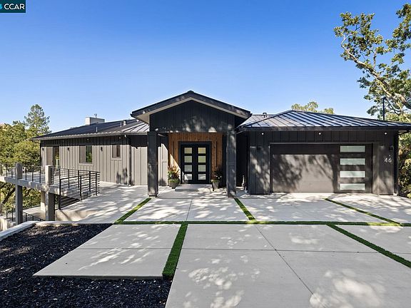 Sleek Modern Mansion in Traditional Sleepy Hollow! Dazzling new construction in Orinda’s most coveted neighborhood, 46 Tarry is a breathtaking 4,861 square foot luxury residence boasting 5 graciously sized bedrooms & 3.5 bathrooms. The standout feature is the dramatic great room with soaring cathedral ceilings, massive glass sliding walls & doors that expose views of the lush tree canopy, blue skies & the verdant canyon. A panorama of light & nature! Both levels are encased in wrap-around decks totaling 2081sf, seamlessly integrate indoor and outdoor for classic California living. The top main floor is completely level-in from the street & houses the primary ensuite. The lower floor boasts a flexible family gathering room with a built-in bar, a cinema media dark room, an exercise/wine room. Each of the 4 spacious bedrooms have walk-in closets & direct access to the outdoor terrace deck. Perched on 1 acre of land, there’s a flat green lawn area in backyard accessible from house. The home’s crisp aesthetic contrasts beautifully with the elegant farmhouse design. Prime location with excellent schools K-12, minutes to shopping village, country club and parks. Welcome to the TreeHouse Mansion!