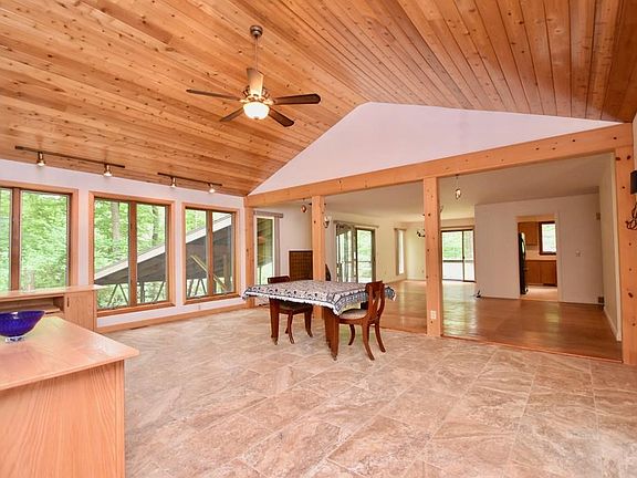 This Executive Ranch w/ three bedrooms, two full baths, with open area to dining room, living room - one-floor living -opening on to a large deck overlooking beautiful gardens. Open living area sports beautiful hardwood floors, cathedral ceilings and lots of light. You have the best of both worlds living in a rural setting yet a short walk to the Amherst line, short drive to Amherst center, shopping, conservation trails, and public transportation. Amenities include master bath, hardwood floors, separate laundry, finished basement and over-sized two-car garage. Above the garage is a large finished workshop for hobbies, work room or storage. Gently sloping lot allows walk-out lower level, ideal for art studio or comfortable family room. Relax in stone-lined patio area leading to private back yard with space to garden bordered by generous shrubbery. Truly a stylish, refined offering with quiet setting. Ready to benefit from an elegant home ready to move in?